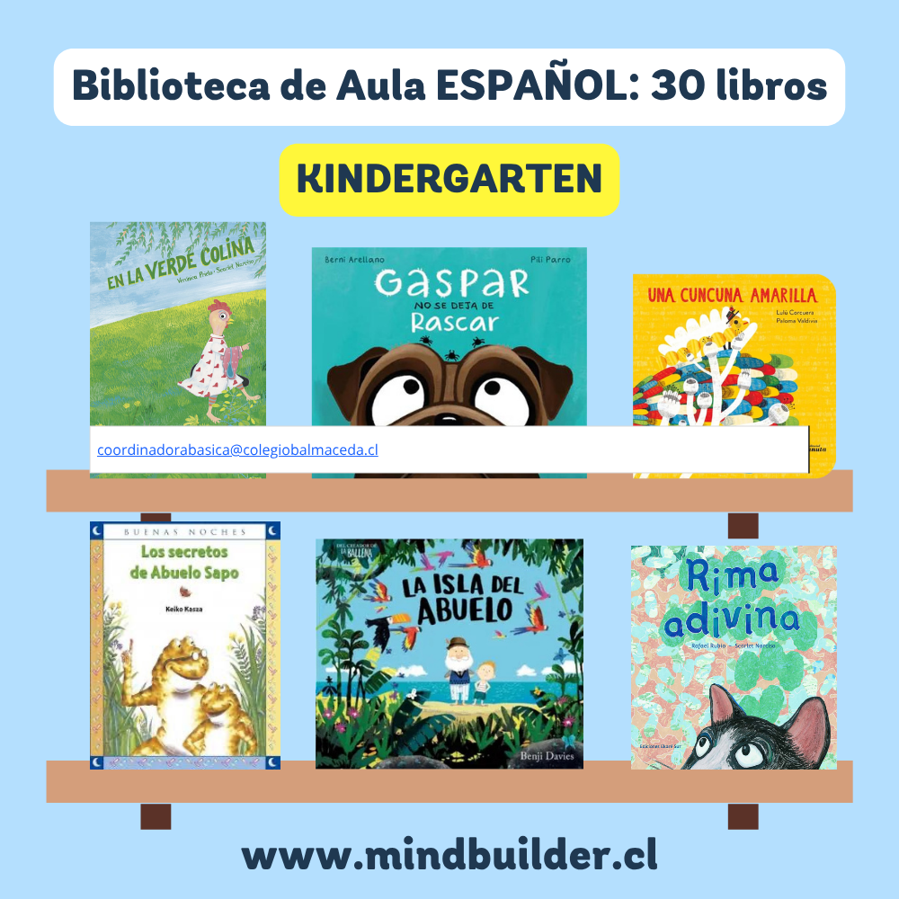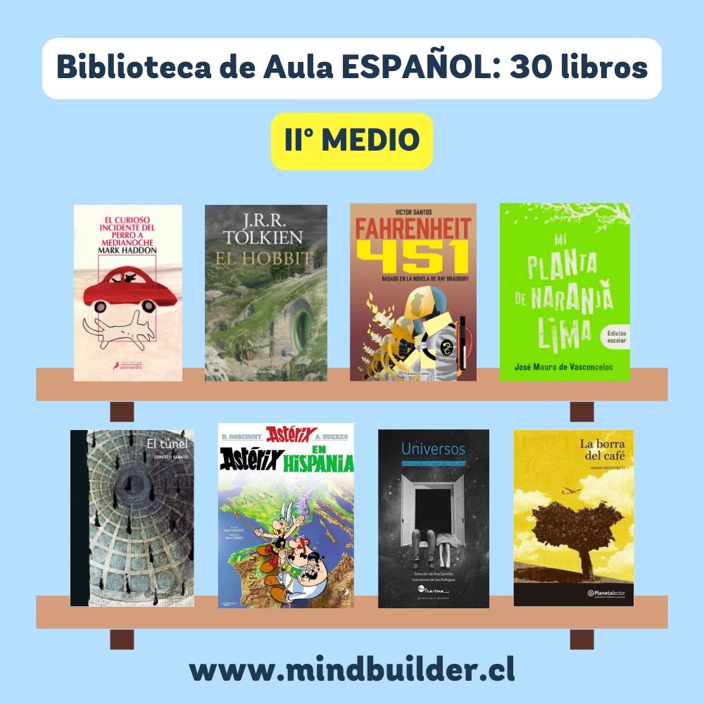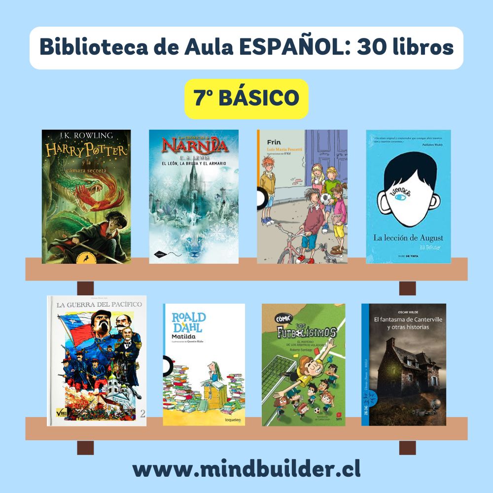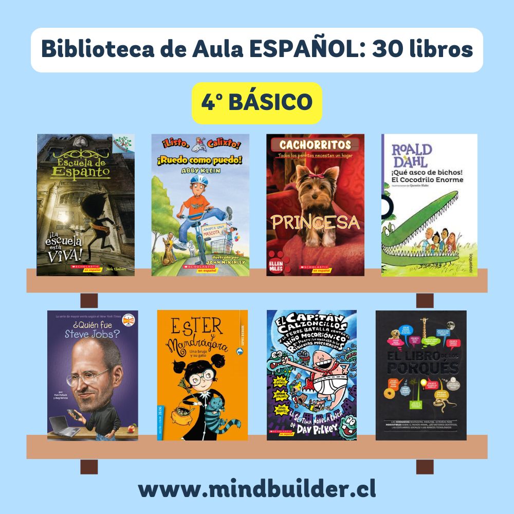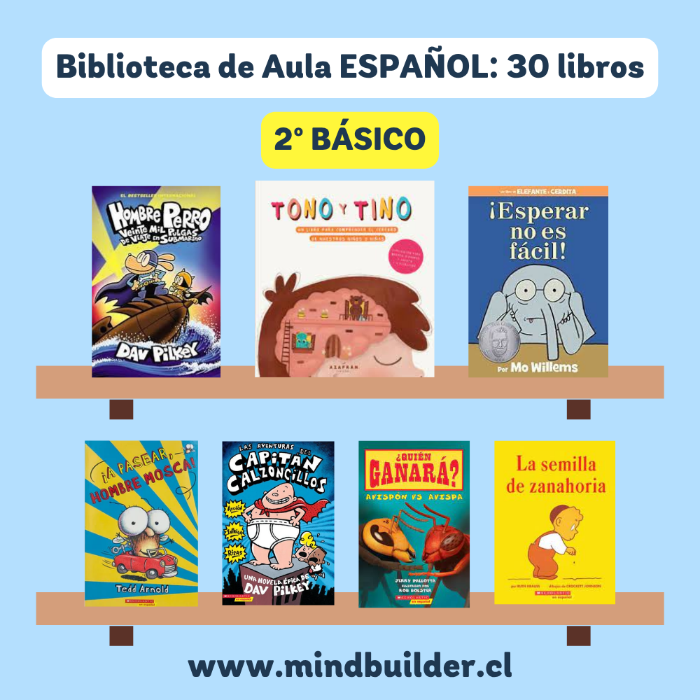 NOTA 1: Las imágenes son referenciales; los títulos pueden variar según stock y requerimientos del establecimiento. NOTA 2: Para preparar una selección personalizada por nivel o proyecto, contáctanos a contacto@mindbuilder.cl NOTA 3: El tiempo de entrega puede variar entre 10 y 30 días hábiles.